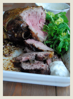 L'arrosto e' una ricetta che desideravo provare da un po'. Si tratta di una bella coscia di agnello cotta al forno e aromatizzata con rosmarino, aglio e filetti d'acciuga.